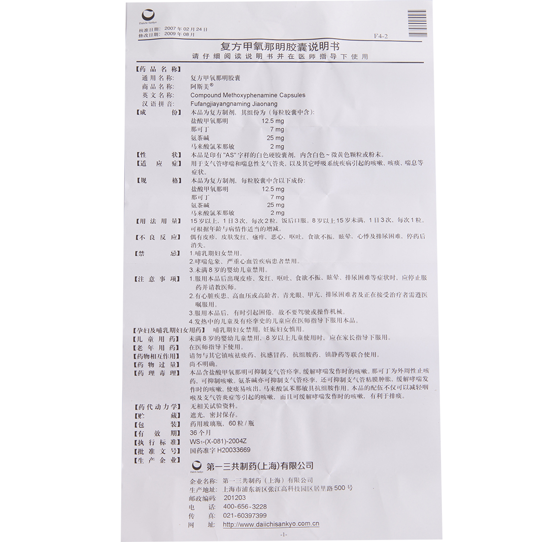 Asmi Compound Methomegranine Capsule 60 grain * 1 bottle of box T