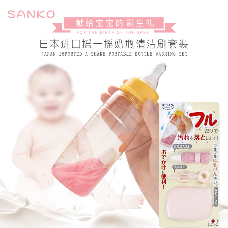 Japan sanko portable bottle brush nipple brush set baby baby bottle cleaning brush outdoor travel belt box