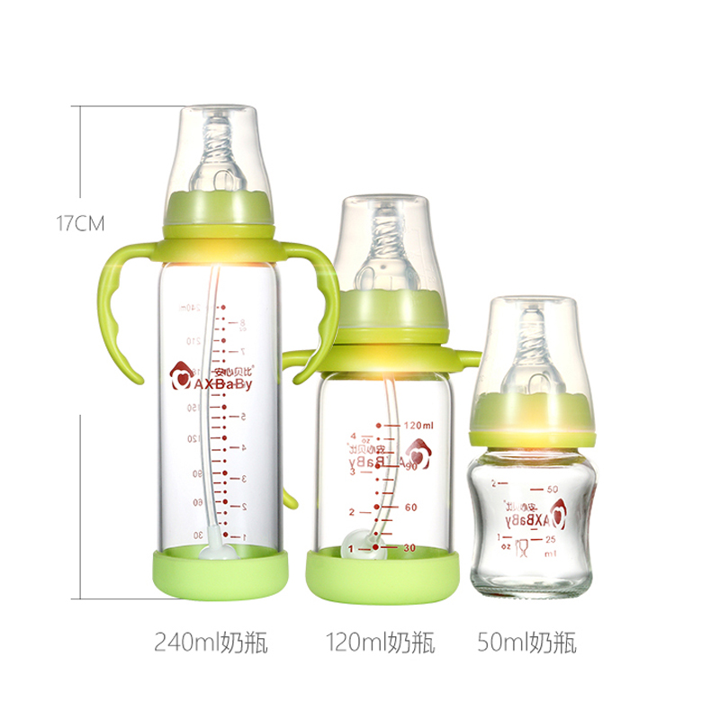Newborn Milk Bottle Glass Suit Beginner Baby Bottle Silicone Anti-Blast Anti-Fall And Anti-Flatulsion Air Small Number with shank