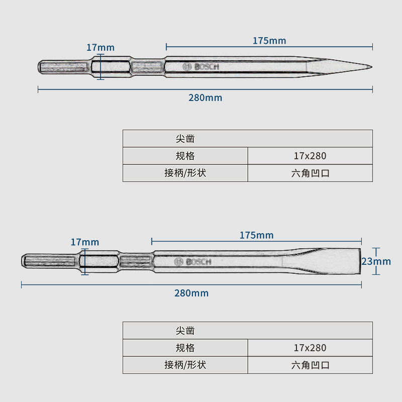 Round handle 14 * 250mm sharp chisel round handle 14 * 250 * 20mm flat chisel hexagonal handle 17 * 280mm sharp chisel hexagonal handle 17 * 280 * 22mm flat chipping