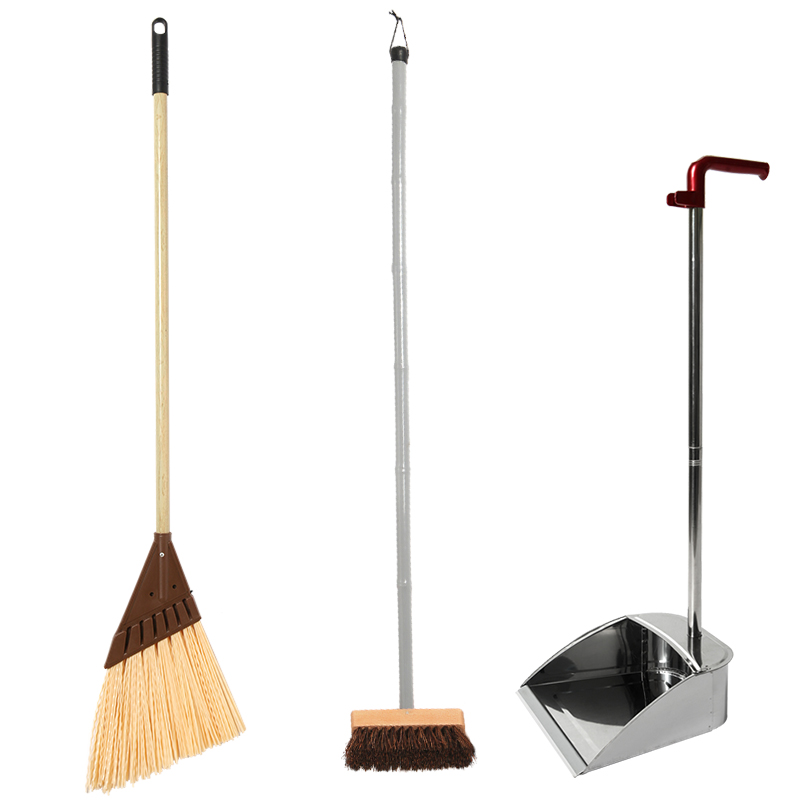 Hansmith Outdoor Cleaning Tool Set Courtyard Sweep Yard Hard Wool Broom Stainless Steel Dustpan Brush 3 Piece Set