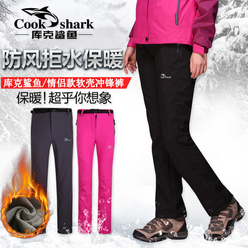 Cook Shark Winter Outdoor Soft Shell Pants Punching pants for men and women Gush Thickened Warm Waterproof Windproof Mountaineering Tide Card