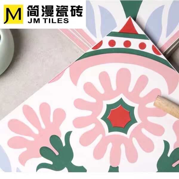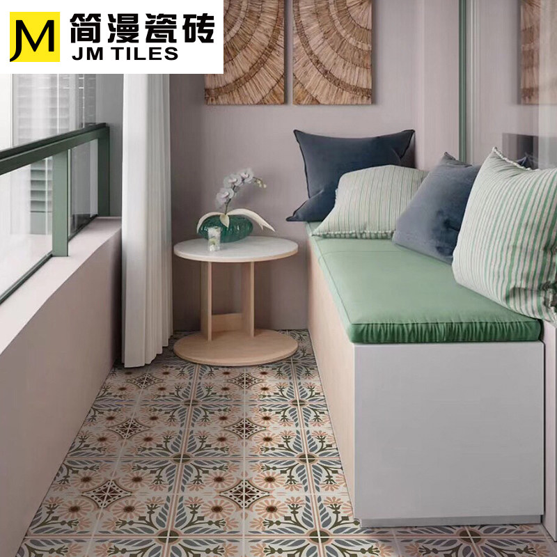 Nordic retro ins all-ceramic sunflower flower brick pink antique floor tile non-slip kitchen powder room balcony tile