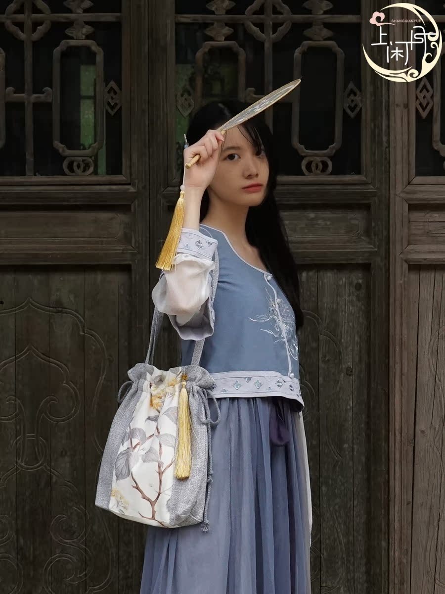 Leisure original Suyin ancient style ink light color printing winter and autumn men's and women's hand-held single-shoulder Messenger bag large