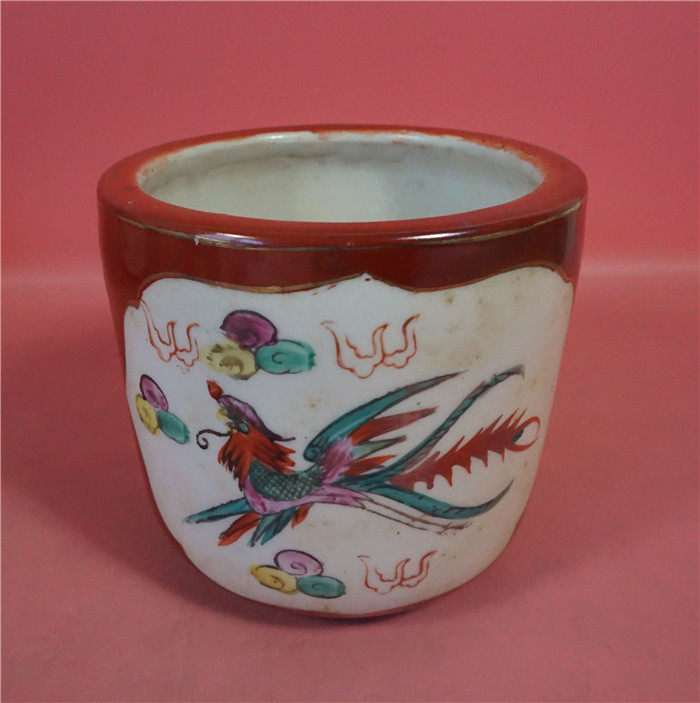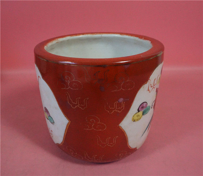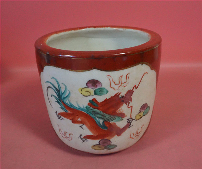 80s Chaozhou Maple Brook One Factory Hand-painted Red Ground Dragon Pinewood Stove No. 11 4 * 10 5 cm Manual hand-painted