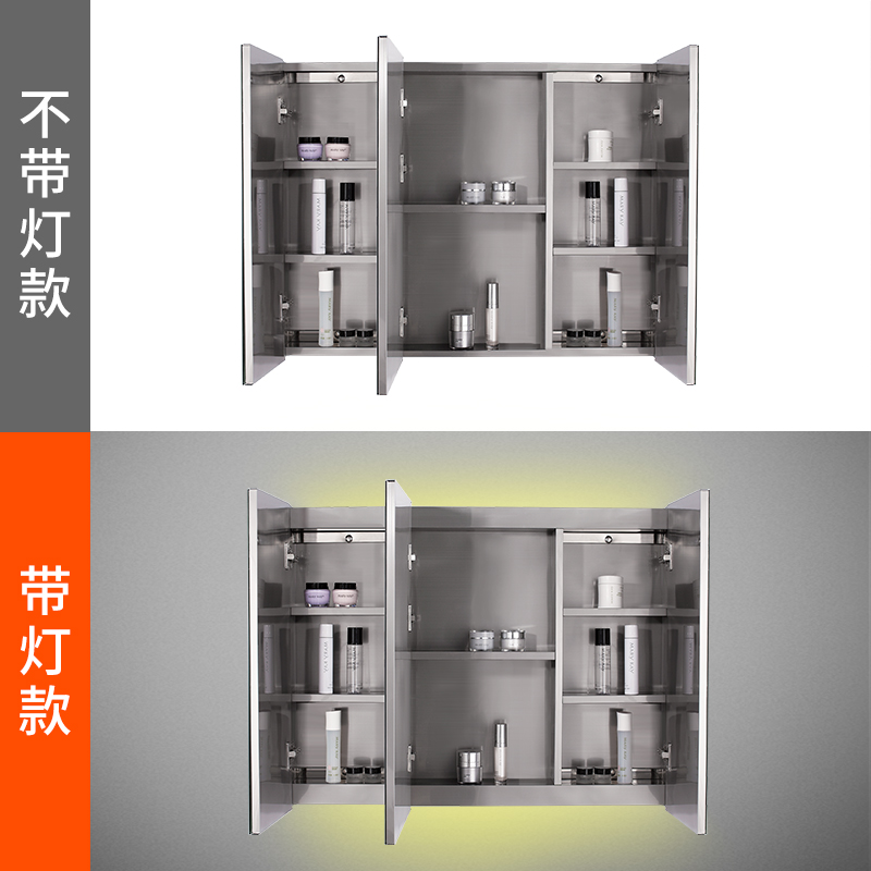 High custom bathroom mirror cabinet Wall-mounted individual stainless steel with lamp Wall-mounted powder room mirror cabinet with shelf