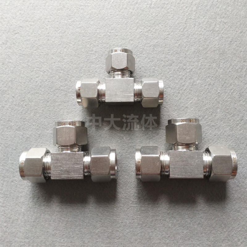 Boutique 304 stainless steel card sleeve joint 3681012 instrument pipe three-way middle joint Equal diameter double card sleeve three-way