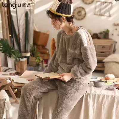 Same language autumn and winter couple pajamas coral velvet padded flannel home clothing men and women's suits