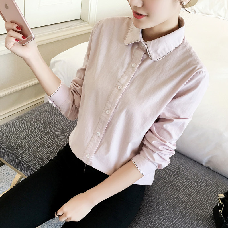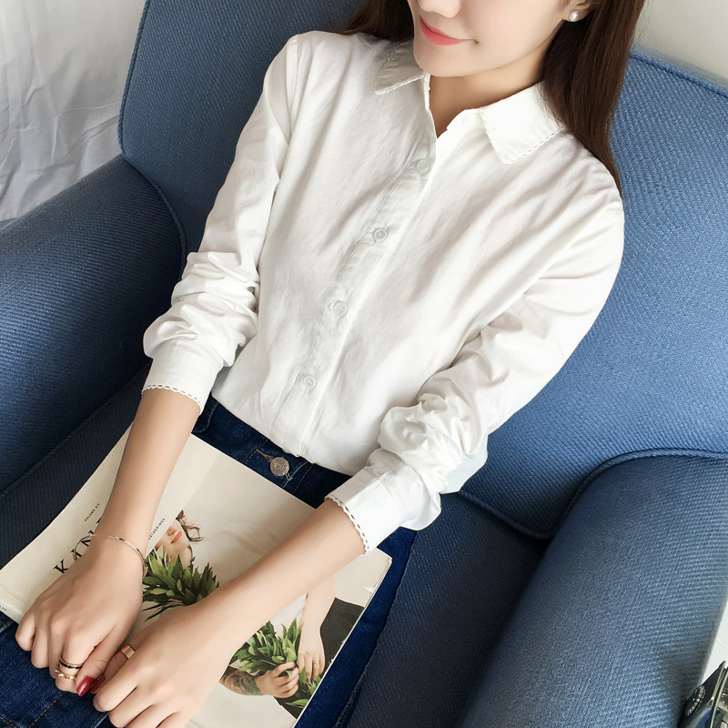 White Shirt Woman 2021 Spring Clothing New Sweet Cotton Pure Cotton with Little Fresh Dog Tooth Student Shirt Shirt