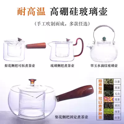 Cooking dual-purpose glass pot Jade water drop pattern Beam cooking teapot Rosewood side handle Glass cooking teapot(liner can be removed) Rosewood side handle Glass cooking teapot Glass grip Glass cooking teapot Blue and white pattern