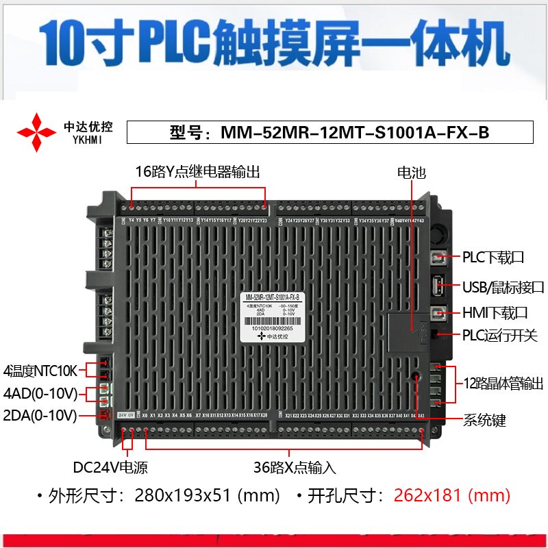 10 inch MM-52MR-12MT S1001A-S1001A-FX-B A in control touch screen PLCAll with AD DA