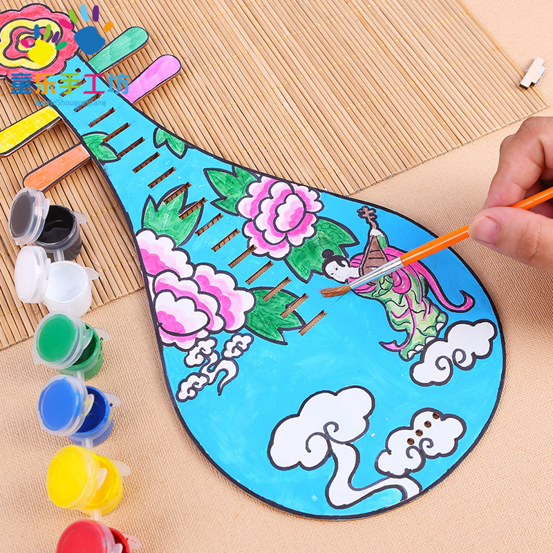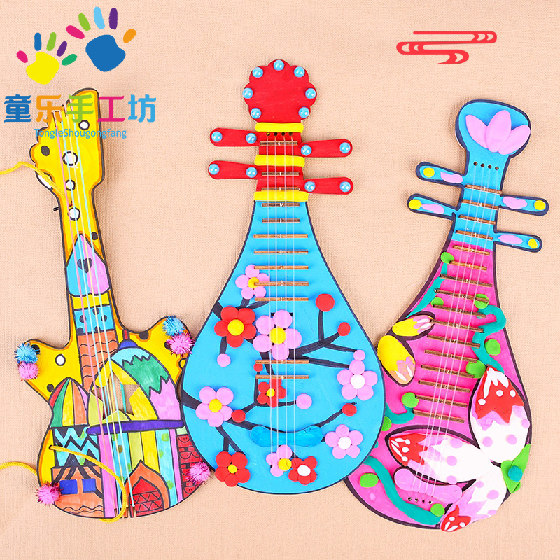 Handmade Guitar Diy Material Kindergarten Creative Graffiti Hand Works With Homemade Painted White Blank Wooden Musical Instruments