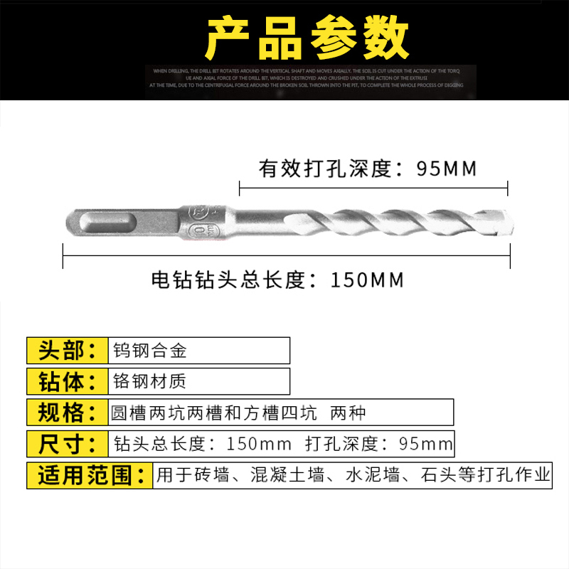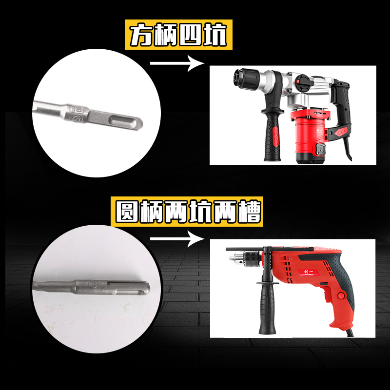 Square handle quad pit electric hammer drill bit multifunction electric hammer drill percussion drill lengthened wearing wall drill concrete drill