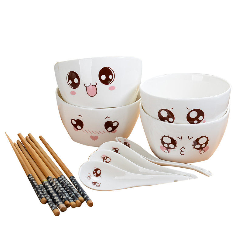 4 bowls 4 spoon4 cute cartoon ceramic tableware creative rice bowl square bowl microwave oven home with small bowl soup bowl