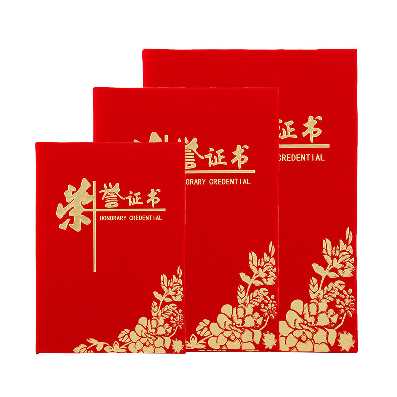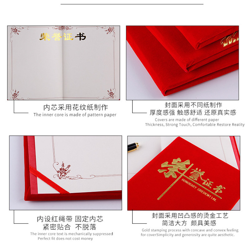 Honorary certificate red suede shell customized custom-made inner page inner core printable cover excellent staff competition awards