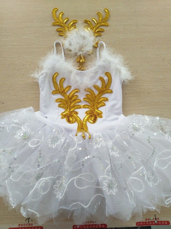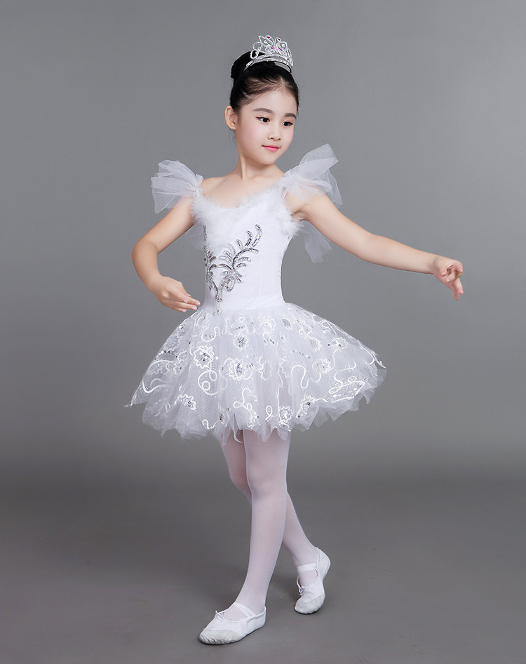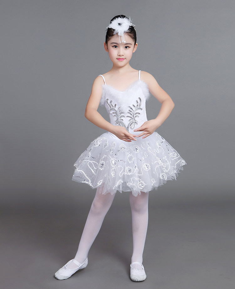 Girls little swan dance costumes children's sling costumes ballet dance costumes children's white gauze skirt princess fluffy