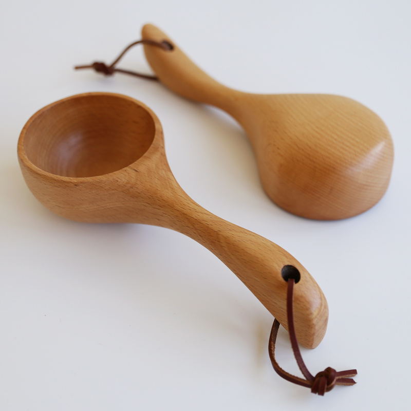 Japanese whole wood handle Rice scoop Household thickened short handle wooden spoon Soup spoon deepened water scoop Beech wine scoop