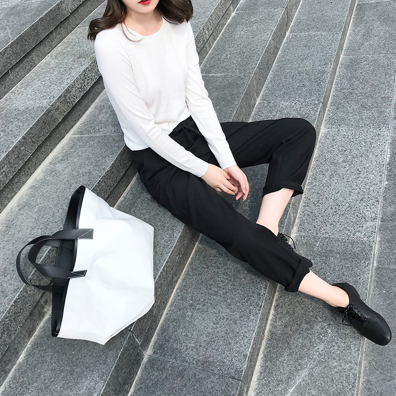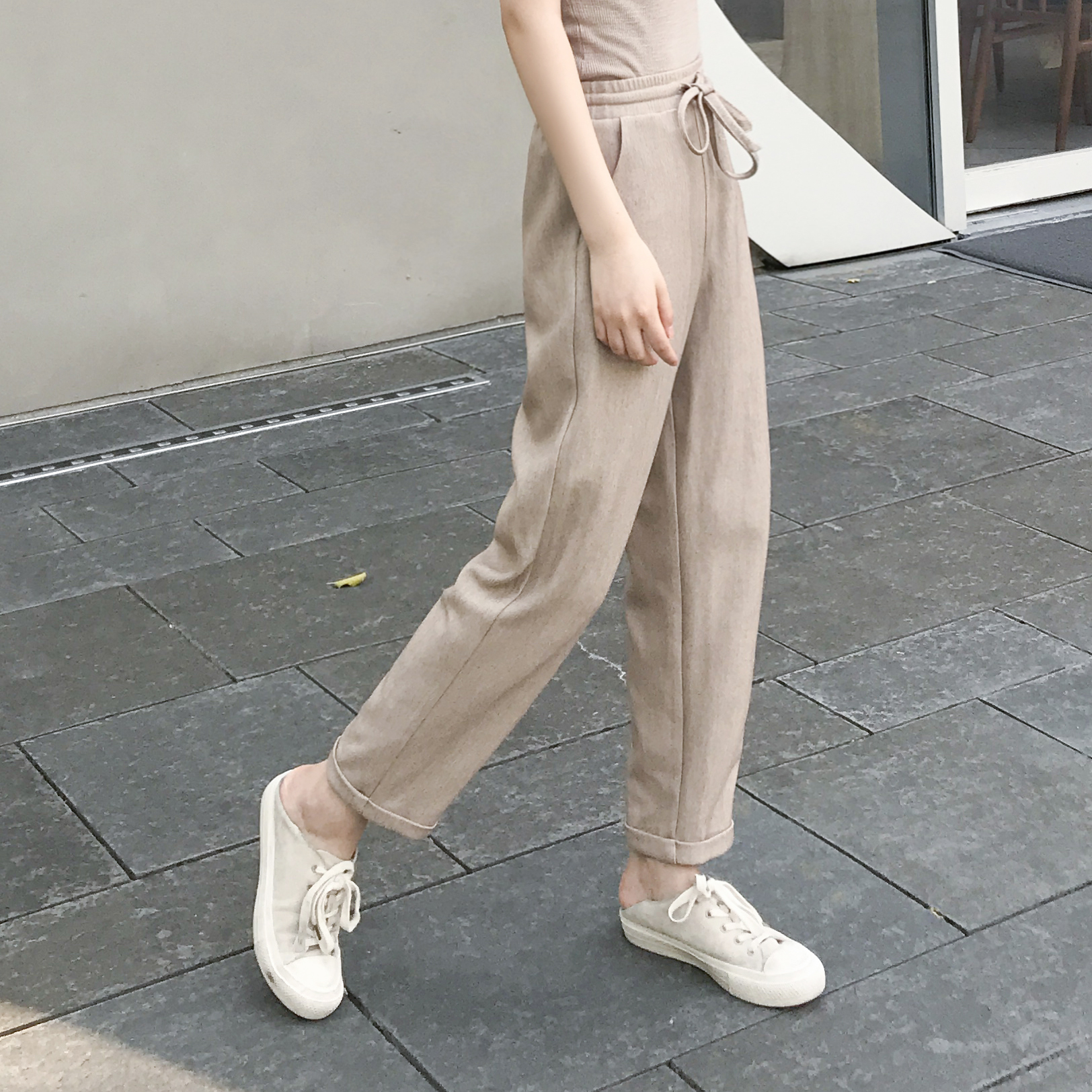 Daxi Homemade Suit Pants Women 2018 Autumn New Straight Trousers Casual Cigarette Pipe Pants Drawstring Workwear Small Trousers