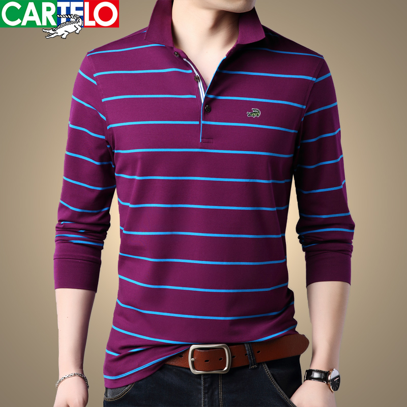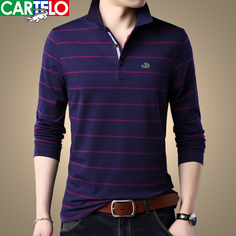 Cardilo Crocodile Spring New Men's Cotton T-Shirt Lapel Striped Long Sleeve T-Shirt Business Casual Men's