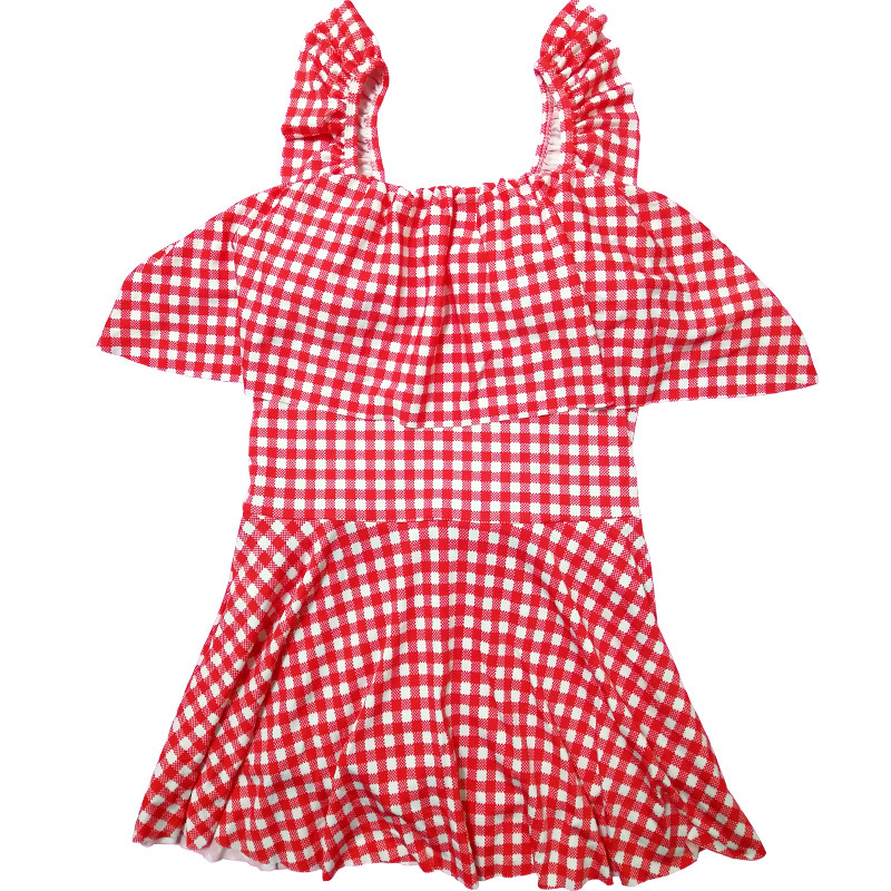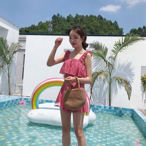 20 years of the new swimsuit small fresh red plaid waist cover belly jumpsuit conservative boxers student swimsuit women