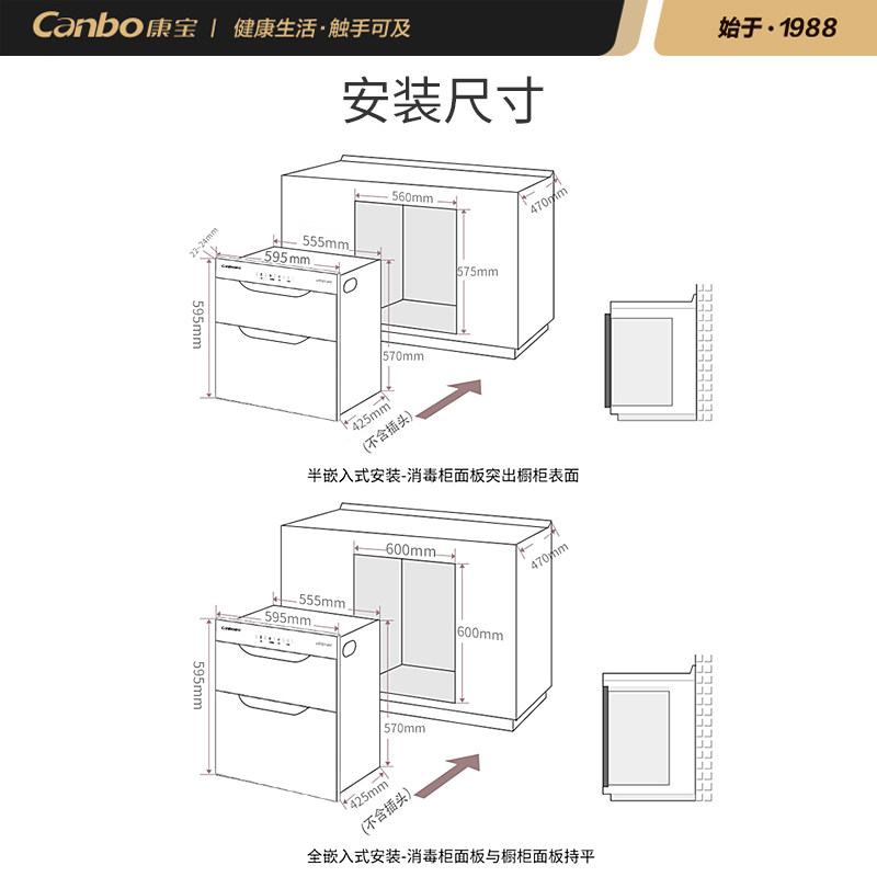 Cambo XDR80-E4E Sterilization Cabinet Embedded Home Kitchen Small Inset Sterilised Cupboard Two Stars High Temperature-Taobao