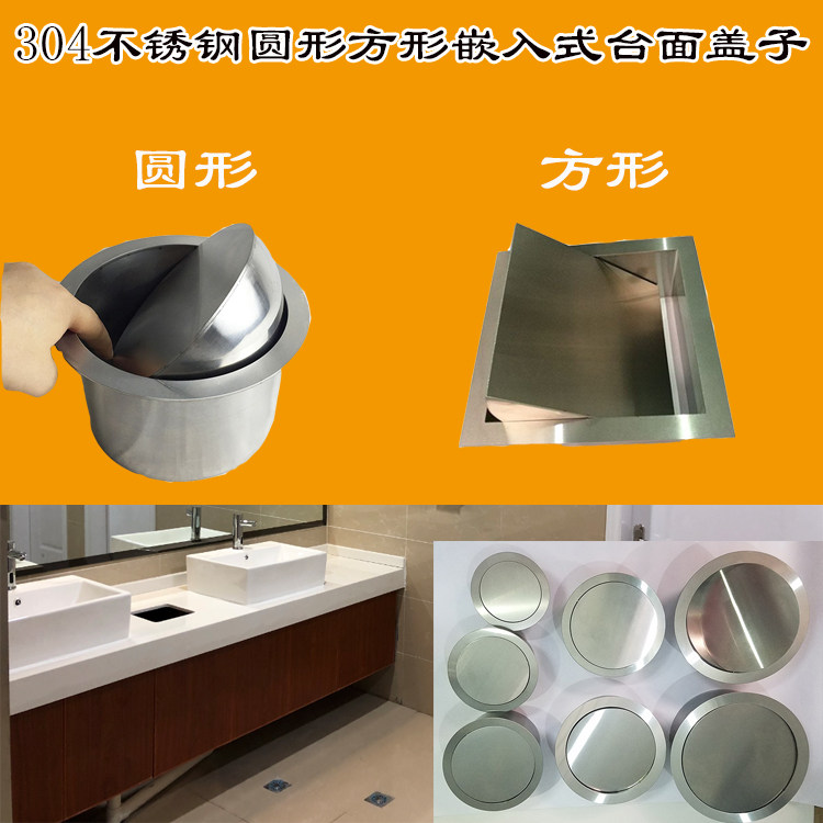 304 stainless steel embedded embedded concealed embedded countertop dustbin small number decorated with lid kitchen down-Taobao