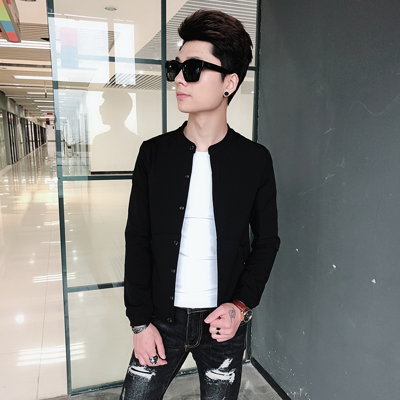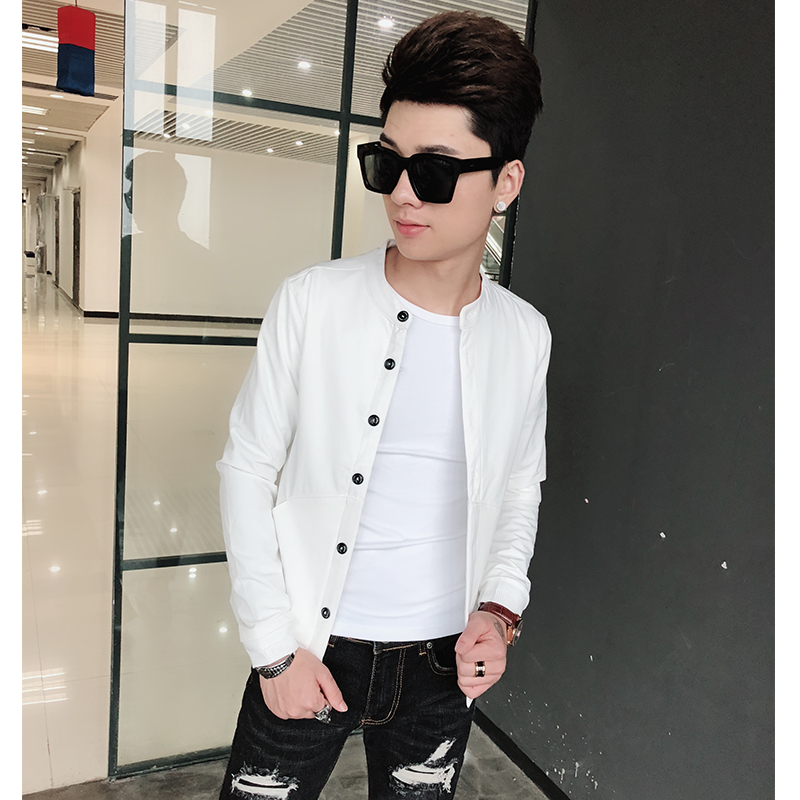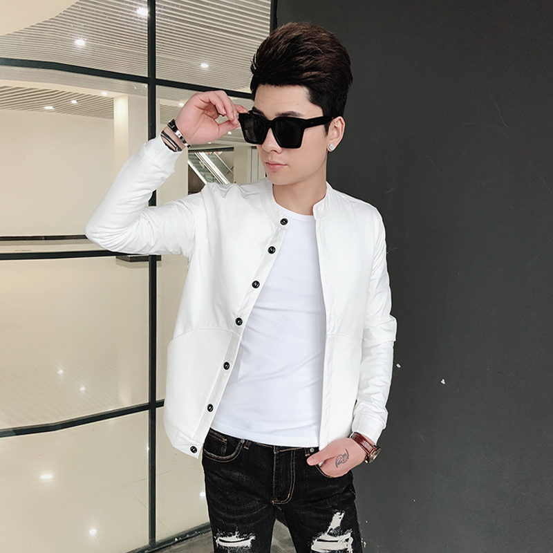Small version slim jacket men's white stand-up collar top shaking sound with the same clothes youth trend jacket spirit guy