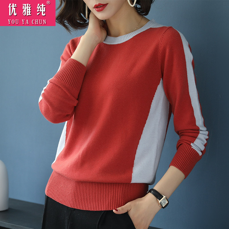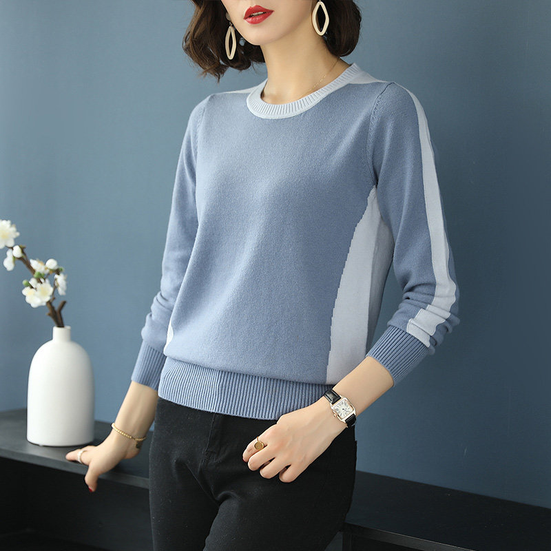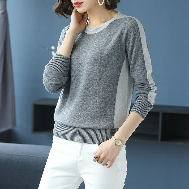 100 pure wool sweater women's 2022 new pullover round neck sweater bottoming shirt color matching loose knitted short top