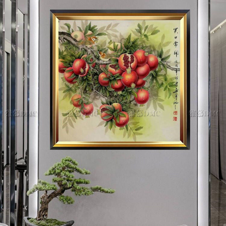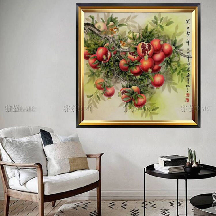 Printed DMC cotton thread cross embroidered with embroidered living room dining room Dining Room Laughs with a lot of pomegranate.