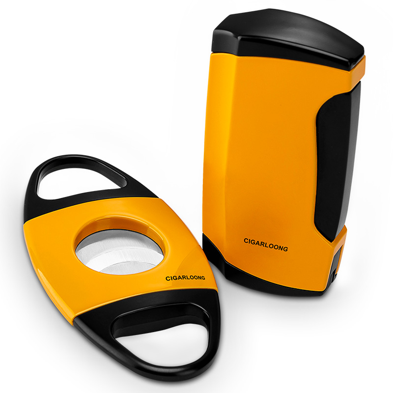 Cigar lighter wind resistant two pieces of cigar scissors metal stainless steel gift box