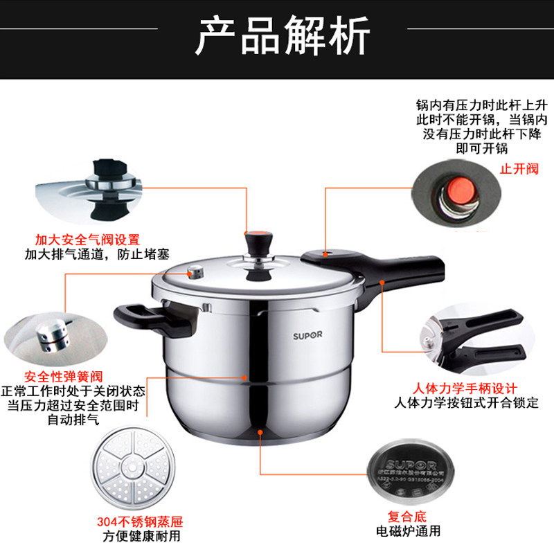 Supor pressure cooker 304 stainless steel gas induction cooker universal 1-2-3-4-5 person Galaxy Star Pressure Cooker