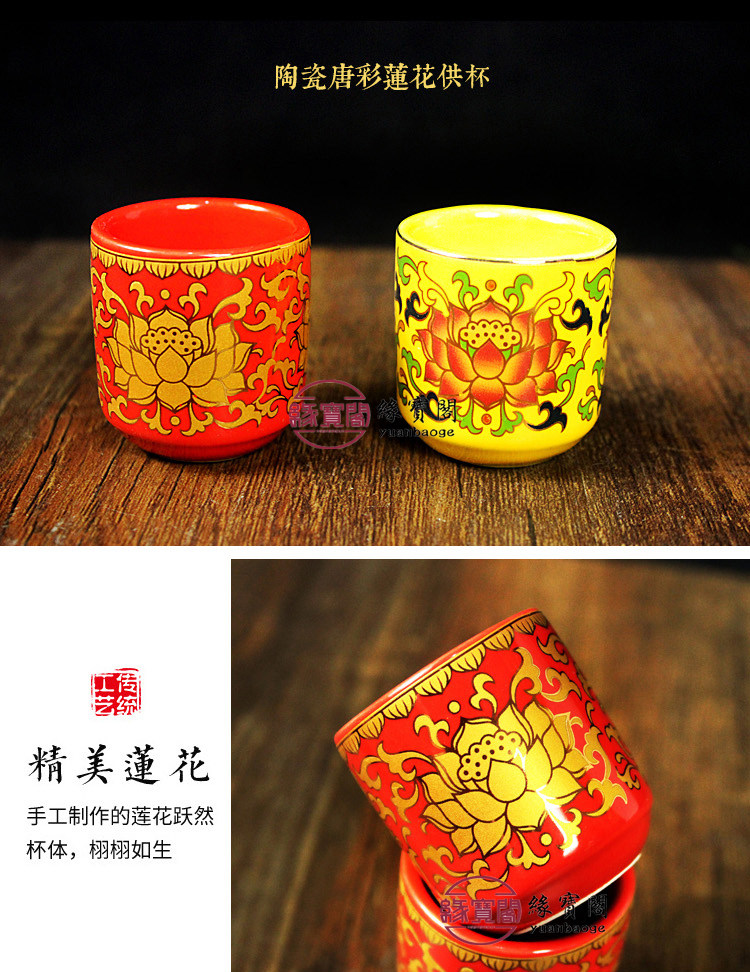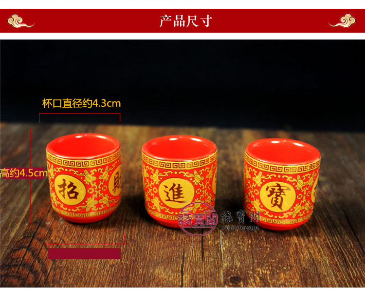 Tang Cai Ceramic God of Wealth Wine Cup Buddha Front Water Supply Cup for Buddha Cup Household Tribute Cup Trumpet to Respect Gods and Immortals