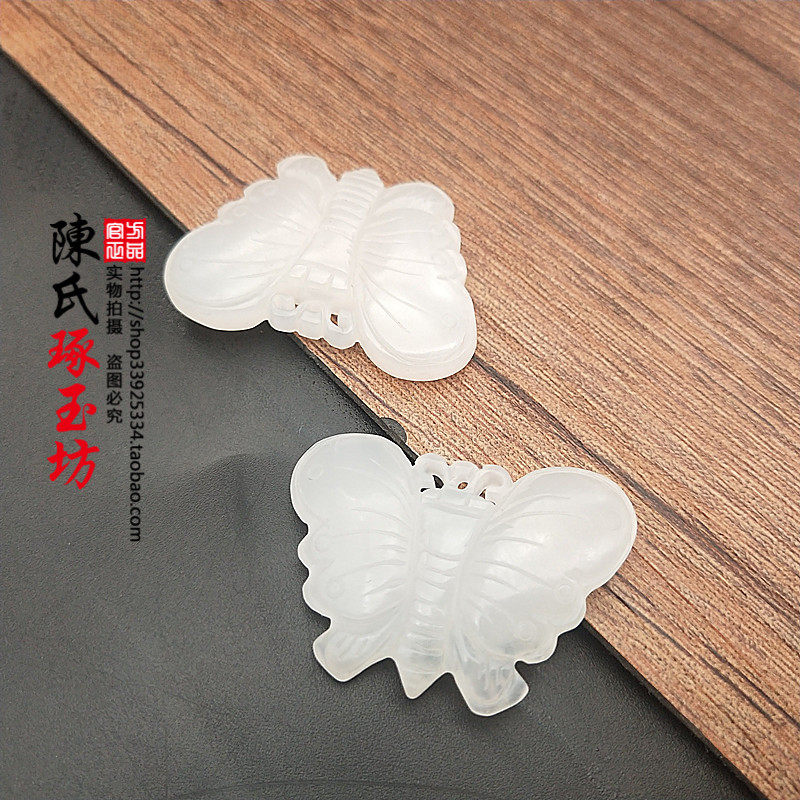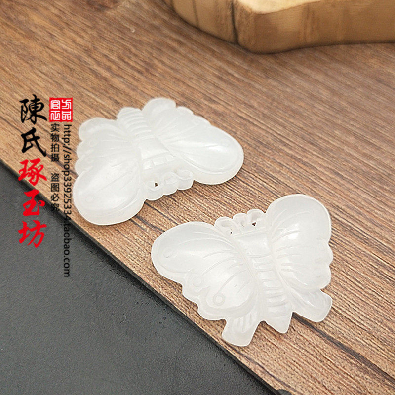 Hetian jade Blue and white jade Small butterfly jade pendant Neck pendant Jade pendant Double-sided carved butterfly jade pendant Jade