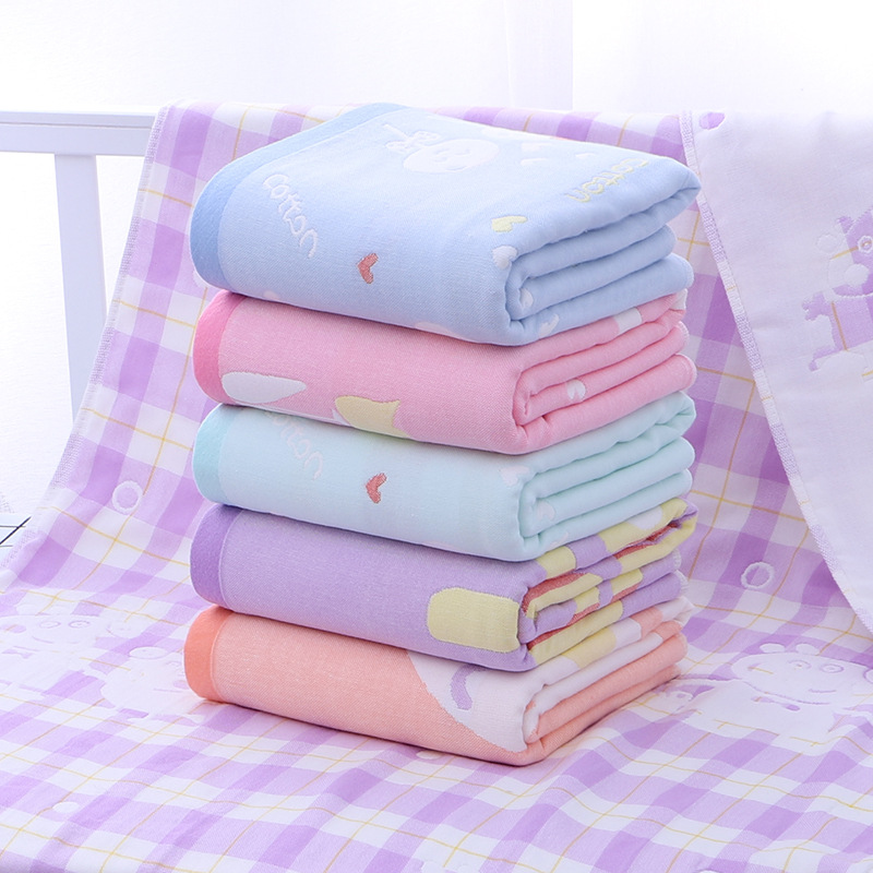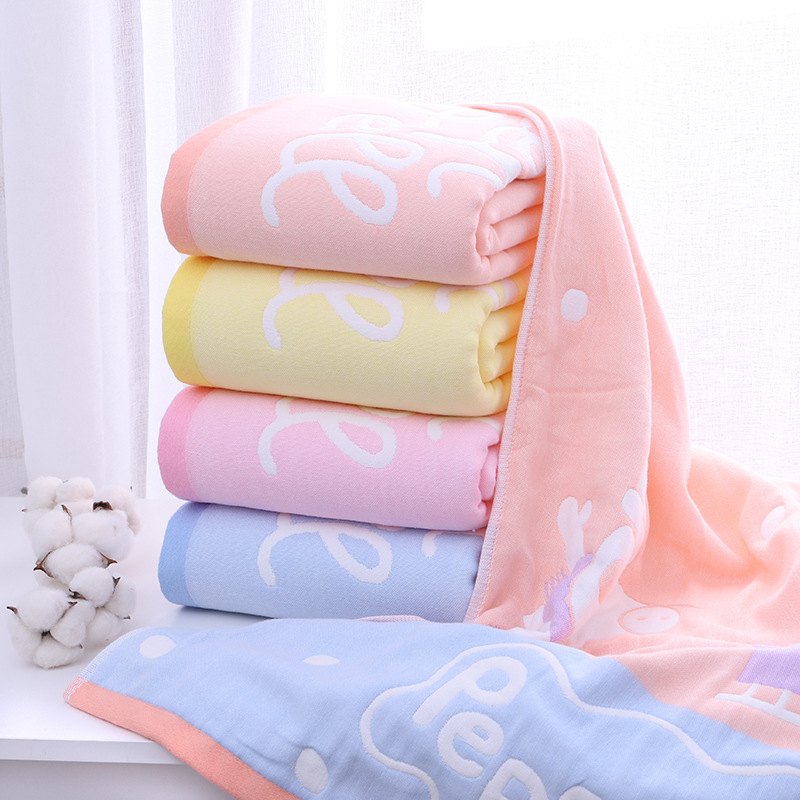 Baby pure cotton children's cartoon bath towel newborn baby four-layer gauze plus cotton wrapping towel super soft and absorbent