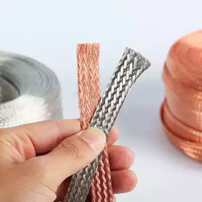 Copper braided tape connecting ground wire tinned copper stranded wire proof sleeve pipe soft connecting shielding sleeve pipe flat bare conductive tape 1206