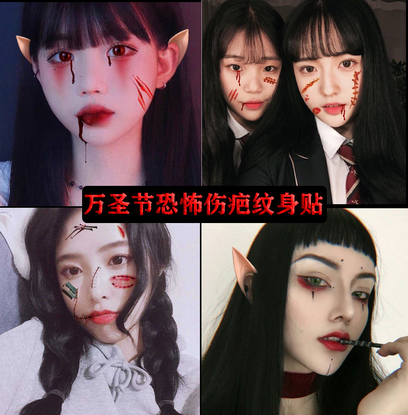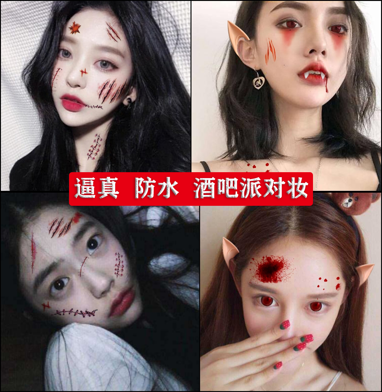 Halloween Tattoo Stickers Waterproof Men and women lasting Korean simulation horror scar scar scar wound scratch bleeding Stickers