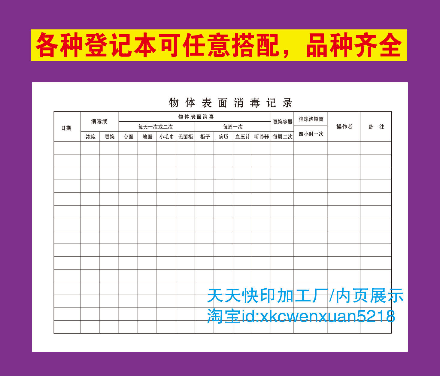 Object surface disinfection record book Object surface disinfection registration Outpatient registration Outpatient medical record log