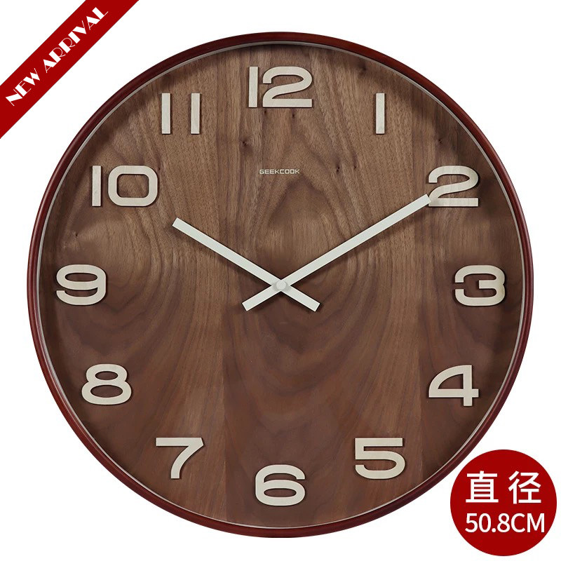 Chinese retro Nordic solid wood three-dimensional characters large size 20 inches living room front lobby mute creative wall clock