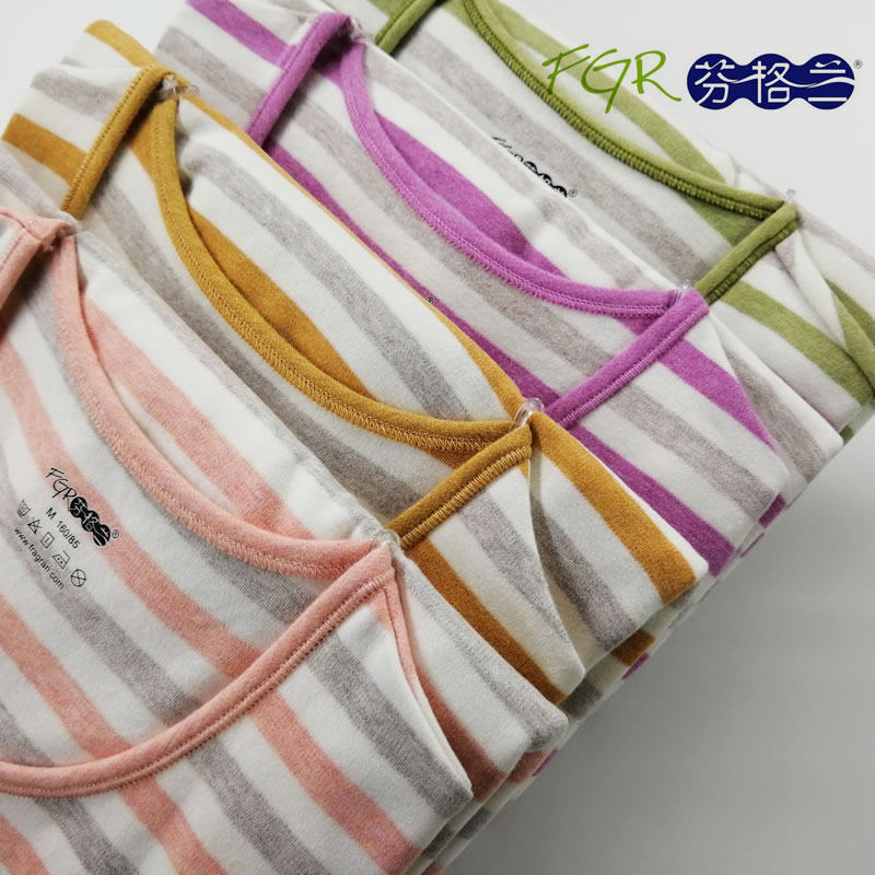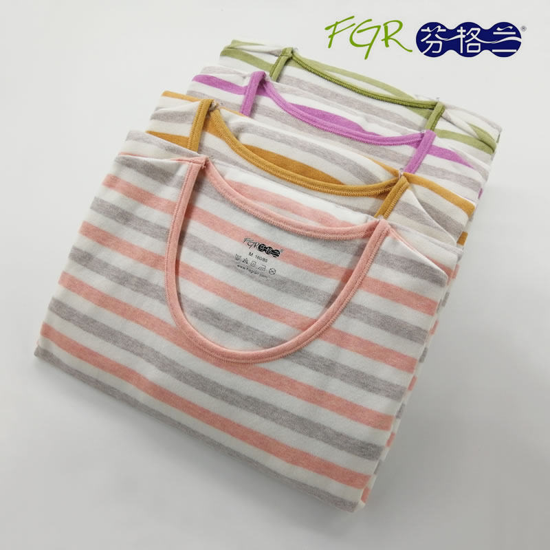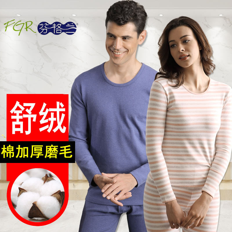 Fengland Cotton Sweatshirt Lady Suede Cotton Thickened Underwear Men's Autumn Clothes Sanitary Pants Suit Round Collar Stripe Grinding WARM