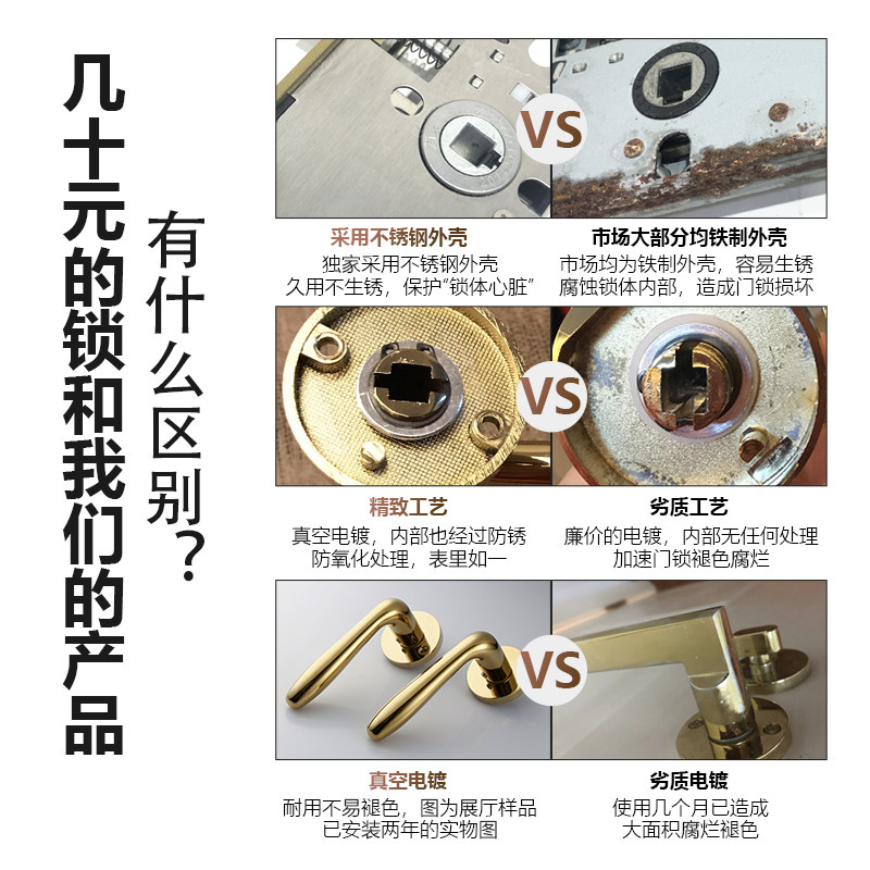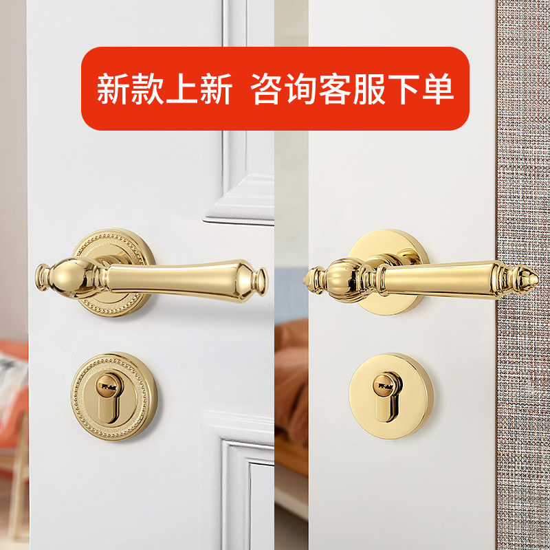 Golden door lock indoor bedroom Nordic magnetic silent split door lock door door handle lock door lock door lock