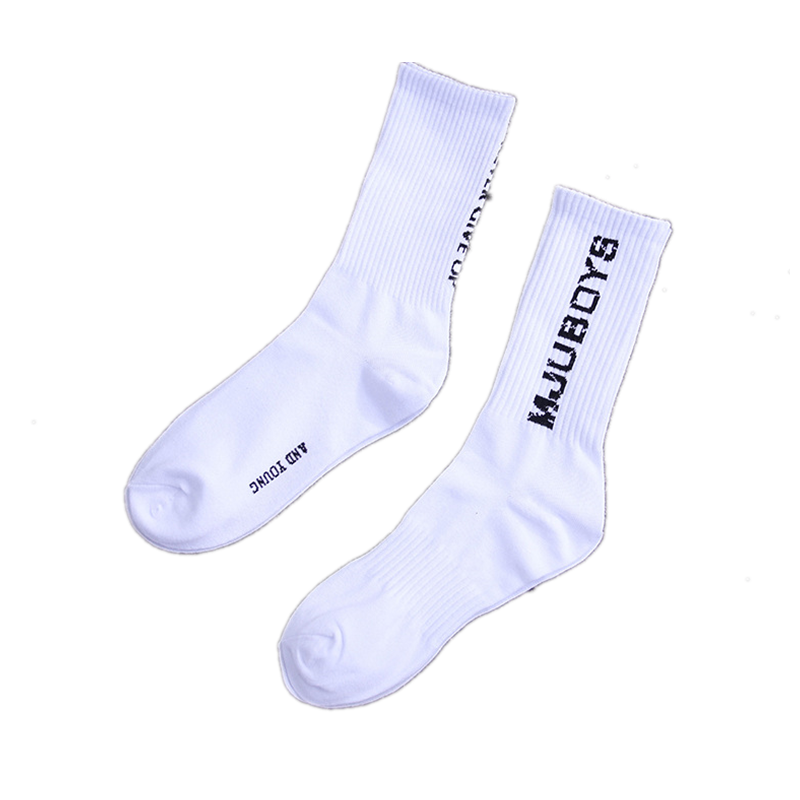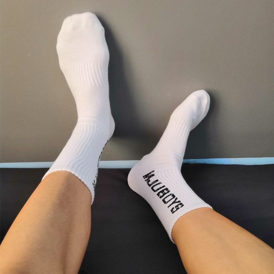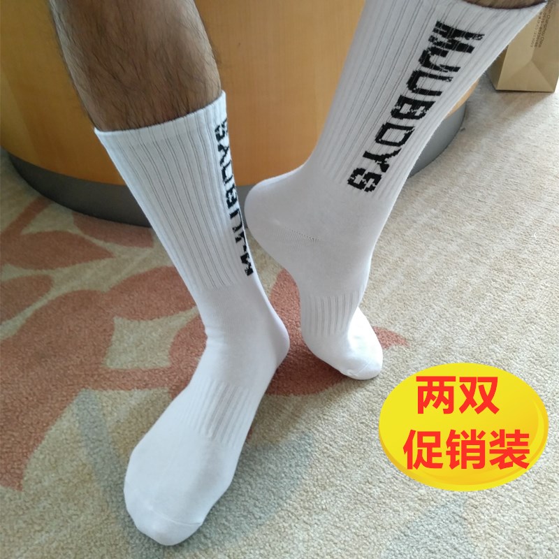 2 Double Loaded Men's Mid-Cylinder White Socks Letters Trendy High Cylinder Pure Cotton Sports Street Dance Skateboard Suction Anti-Slip Fashion Black Socks