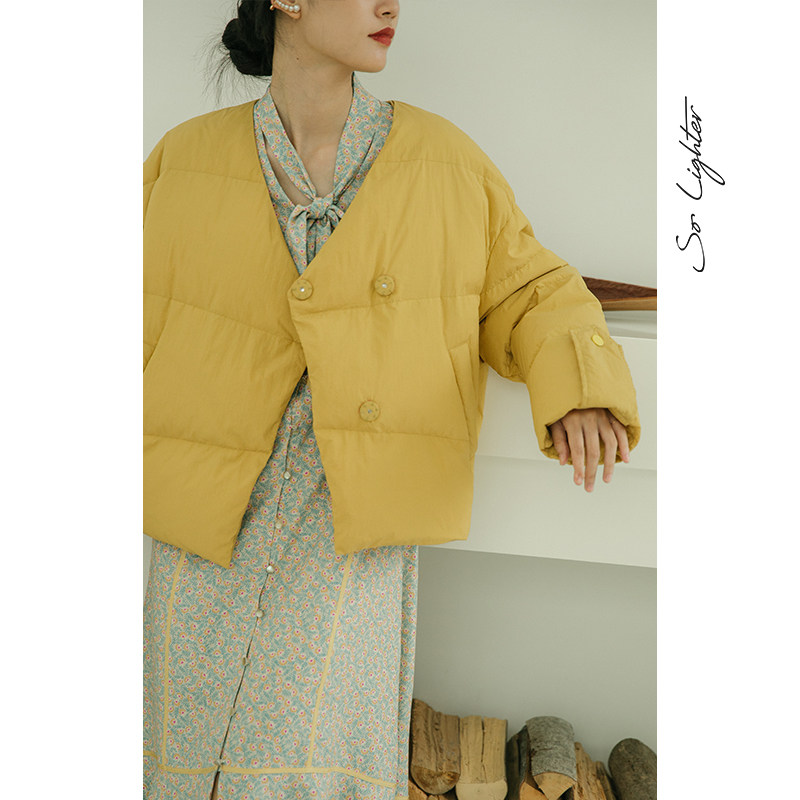 SoLighter asymmetrical tangent light bread down jacket casual warm short coat winter