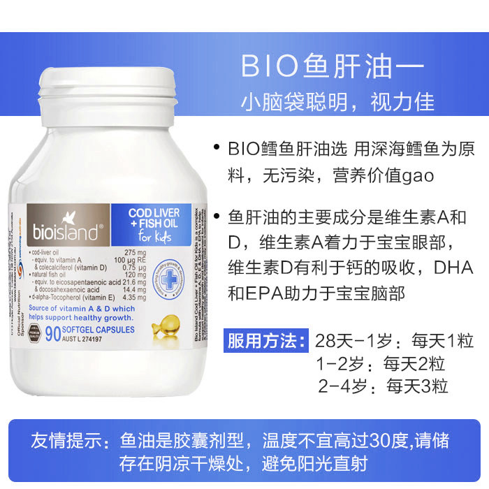 Australia bio island fish oil 90 capsules containing dha infant cod liver oil soft capsules