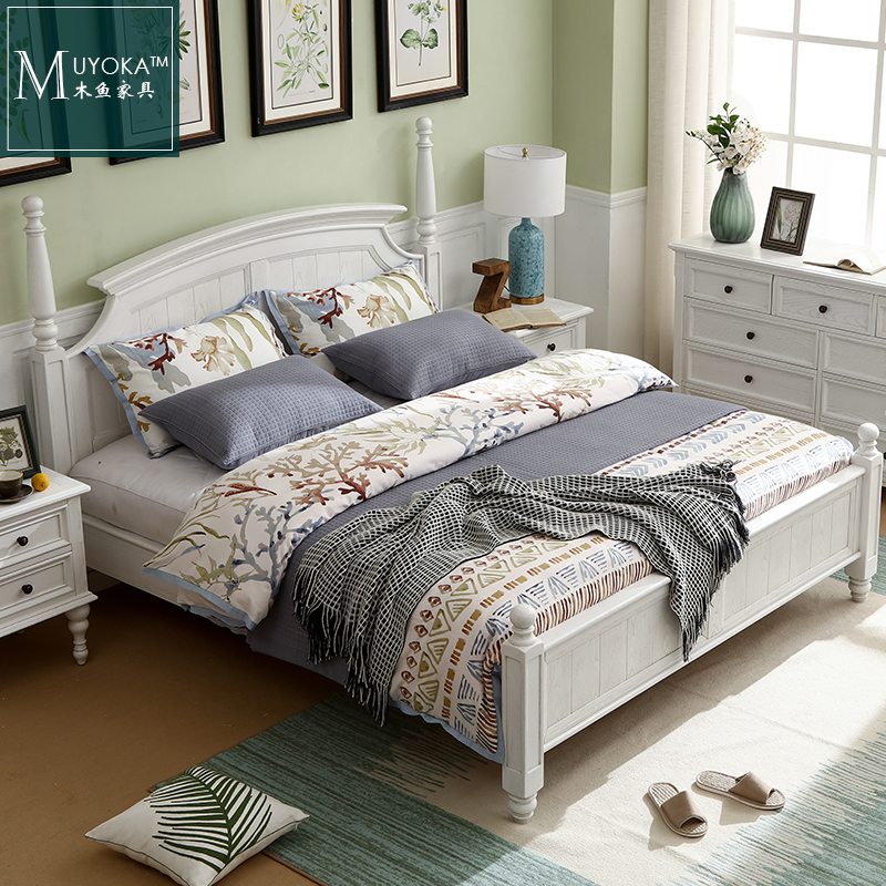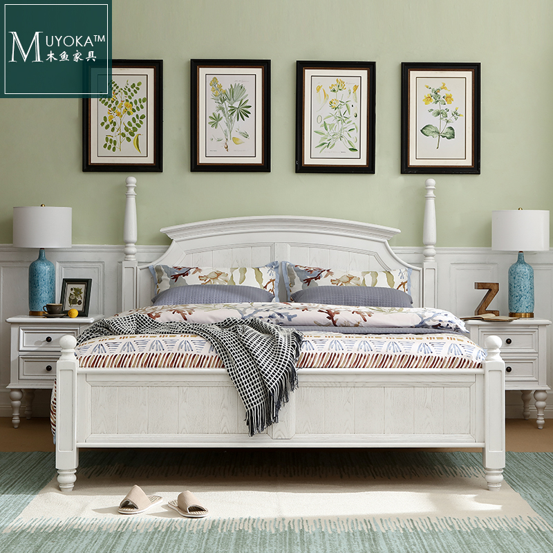 American Countryside White Wax Wood White Solid Wood Arched Bed Bedroom Double Bed-Taobao