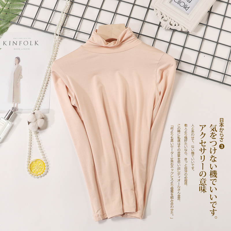 Modal half turtleneck bottoming shirt long-sleeved women's autumn and winter thin section tight-fitting large size women's black T-shirt top