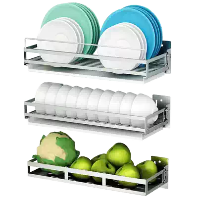Wurun 304 stainless steel dish drain rack wall hanging hanging bowl rack no hole kitchen storage
