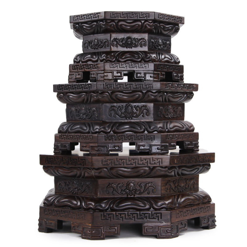 Buddha's pedestal solid wood octagonal Guanyin Bodhisattva lotus base Guan Gong jade Red Wood Base Wooden