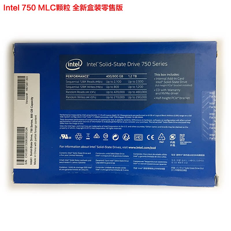 intel 750800 G 1 2T 2T pcie nvme card-type mlc grain solid-state hard disc