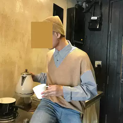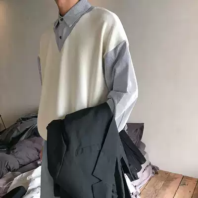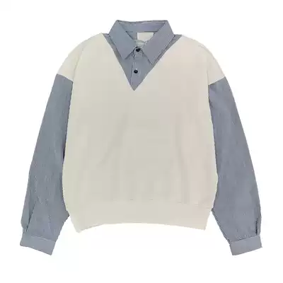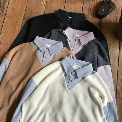 19studio early autumn ins college style shirt harbor wind stitching ulzzang fake two long sleeve shirt men and women