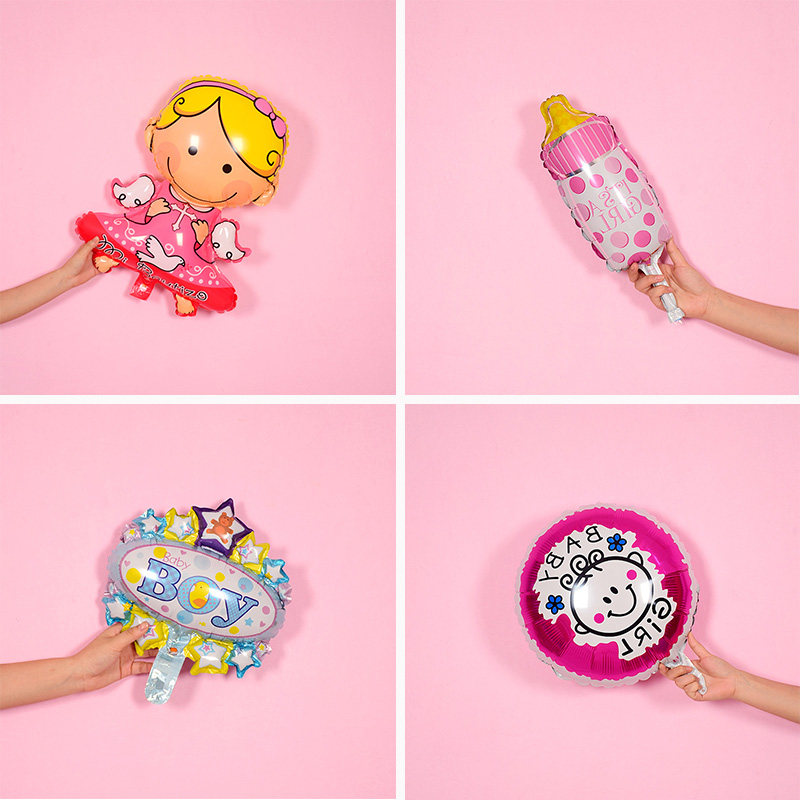 Pink Footed Girl Aluminum Foil Balloon Blue Footed Aluminum Foil Balloon 35cm Women's Aluminum Foil Balloon Blue Bottle Balloon Pink Milk Bottle Balloon Pink Big Numbers Stroller Blue Big Baby Stroller Woman